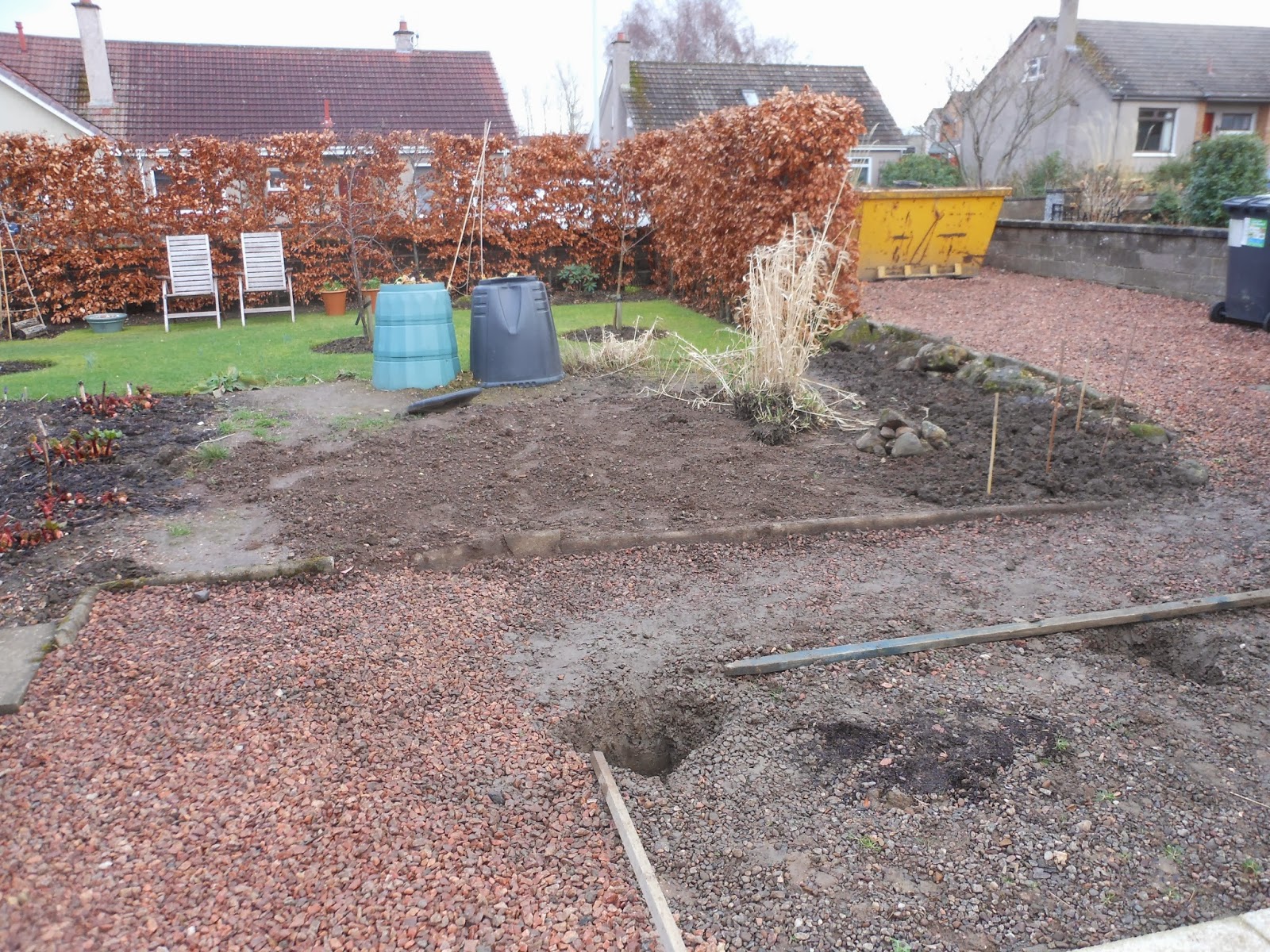 Earlier this week we had bare root hedge plants delivered to extend our Beech hedge. Jan dug the trench and planted them herself during the week-