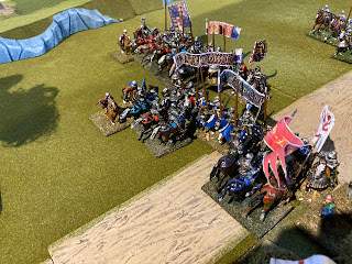 Yesterday saw me at my regular opponent’s for a late medieval game. My French Ordonnance army travelled safely by train in their box files, resplendent in a Percy Pig Christmas carrier- only one big enough but it does get you strange looks at other times of the year!